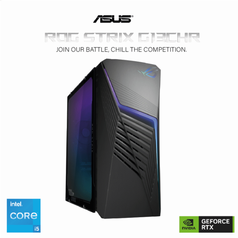Desktop Gaming ASUS ROG G13CHR | Intel® Core™ i5-14400F Processor Air Cooler, NVIDIA® GeForce® RTX3050 8GB GDDR6 16GB DDR5 WIFI & Bluetooth Integrated – 2 Years Warranty