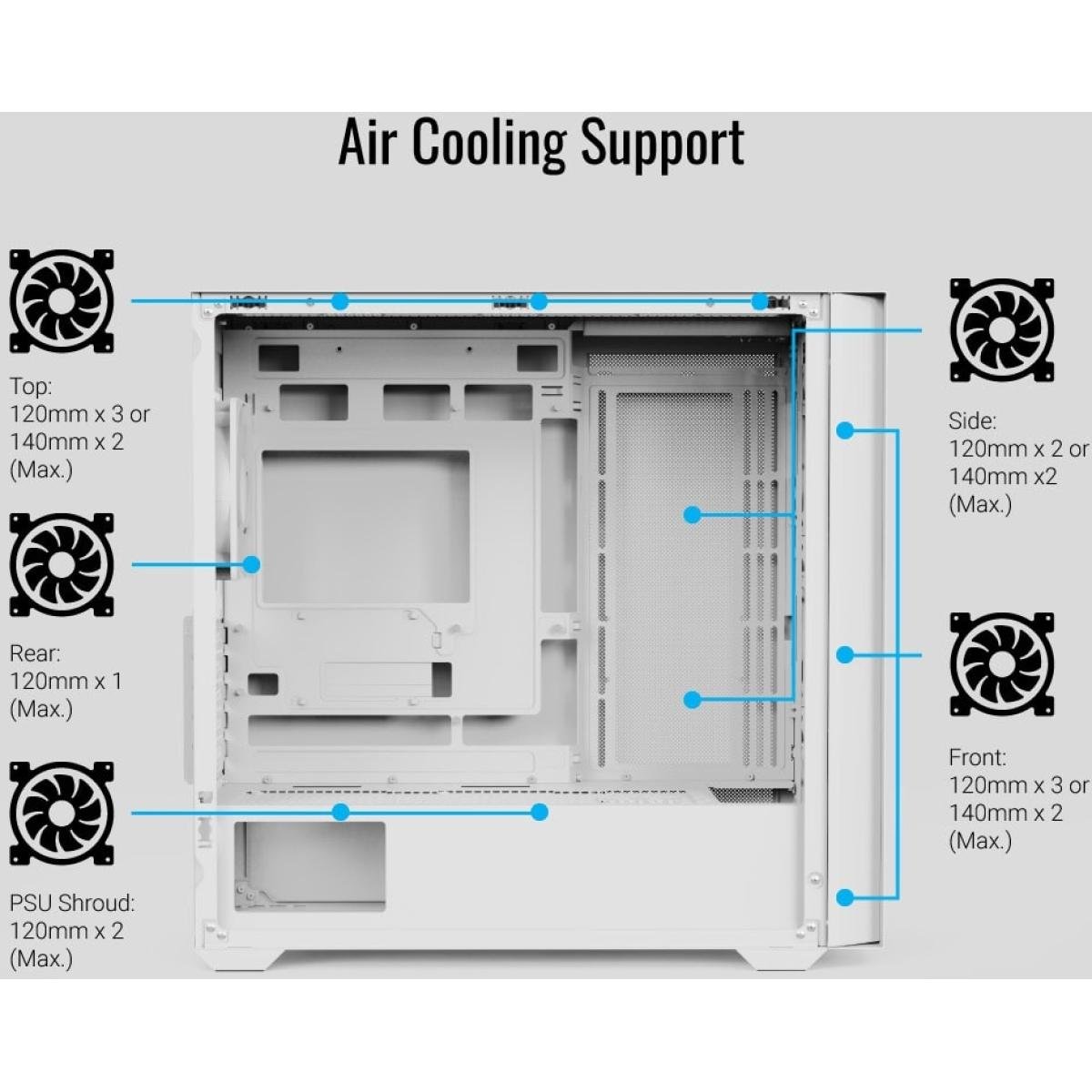 Front: 120mm x 3 or 140mm x 2 (Max.) (120mm ARGB fan x 3 included)
