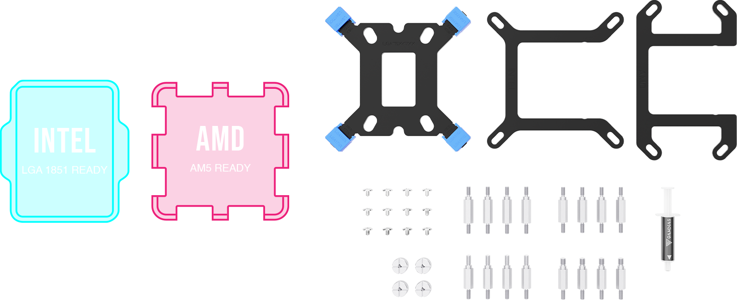 The CHIONE P5 Series ensures seamless installation on both Intel and AMD platforms, including LGA 1851 and AM5 socket.