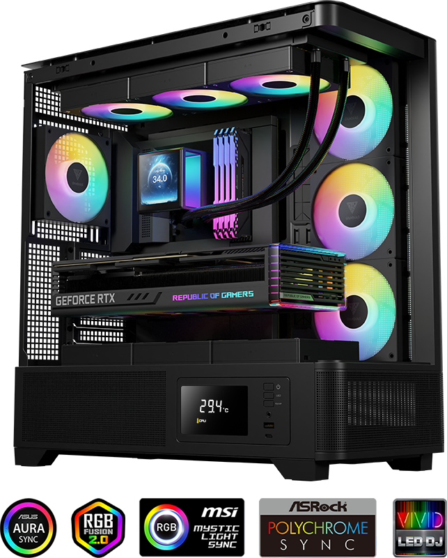 Effortlessly switch between 30 pre-programmed lighting effects using the conveniently provided switch connector or the dedicated case LED button. Furthermore, achieve synchronized and personalized lighting effects by connecting to any motherboard equipped with a 5V 3-Pin addressable RGB header.