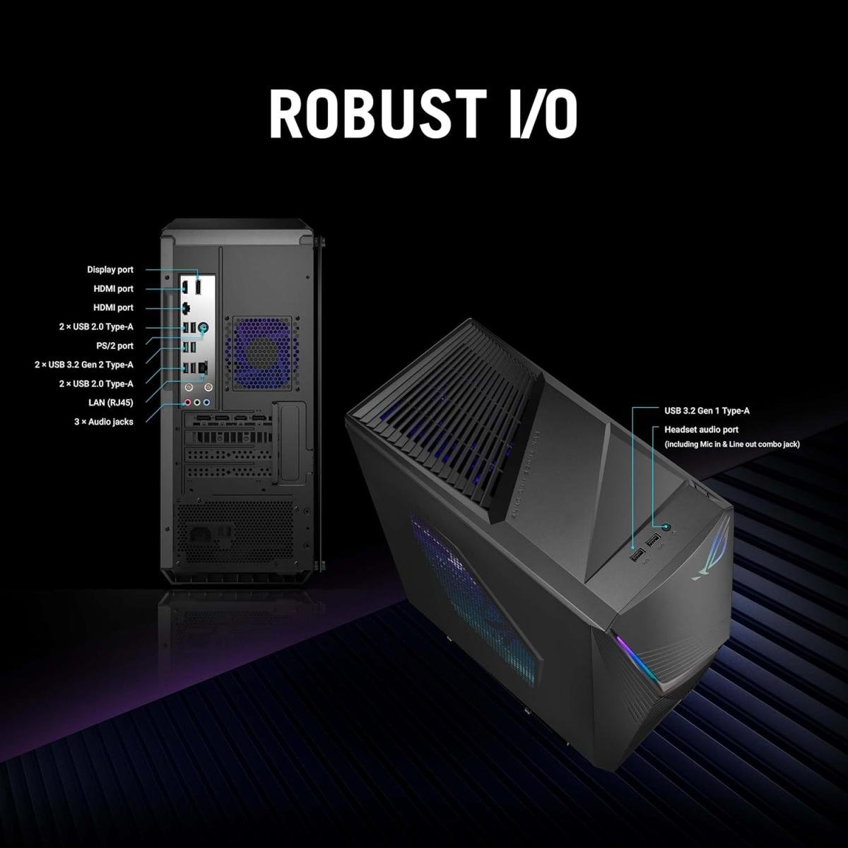 Desktop Gaming ASUS ROG G13CHR | Intel® Core™ i5-14400F Processor Air Cooler, NVIDIA® GeForce® RTX3050 8GB GDDR6 16GB DDR5 WIFI & Bluetooth Integrated – 2 Years Warranty