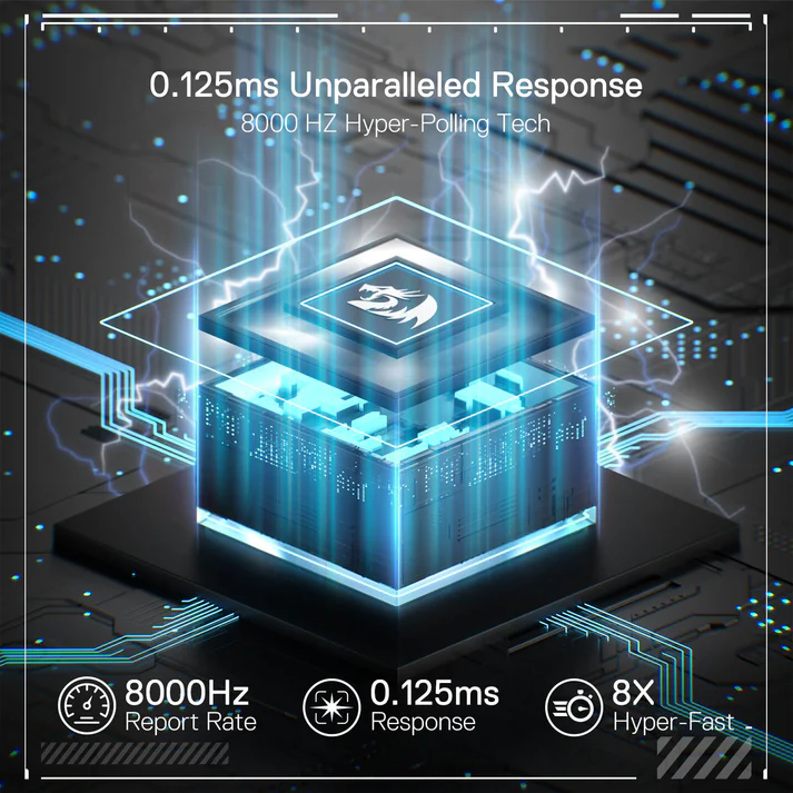 Redragon K617 Gaming Keyboard's 8000Hz Polling Rate and 0.125ms Response Time for Ultra-Fast, 8X Hyper-Accurate Performance
