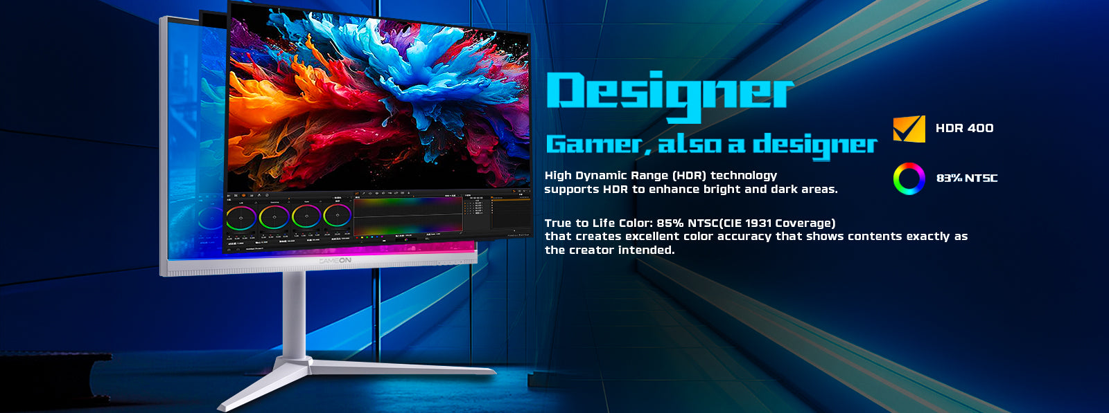• Color Gamut: sRGB 120% coverage and NTSC 85%, with HDR10 support.